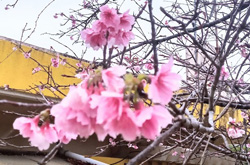 沖縄はあいにくの雨模様で肌寒く。街なかのカンヒ桜の開花もやや遅れているようです。