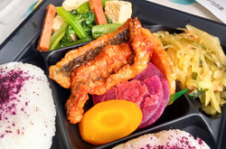 昼食は、特別にメニューを変更していただいたというウチナー弁当でした。