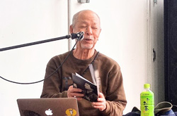 総会後は特別企画講義として、沖縄民俗祭祀採音者であり文筆などの活動で有名な宮里千里先生が、貴重な音源を披露しながらその解説をしてくださいました。